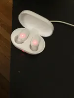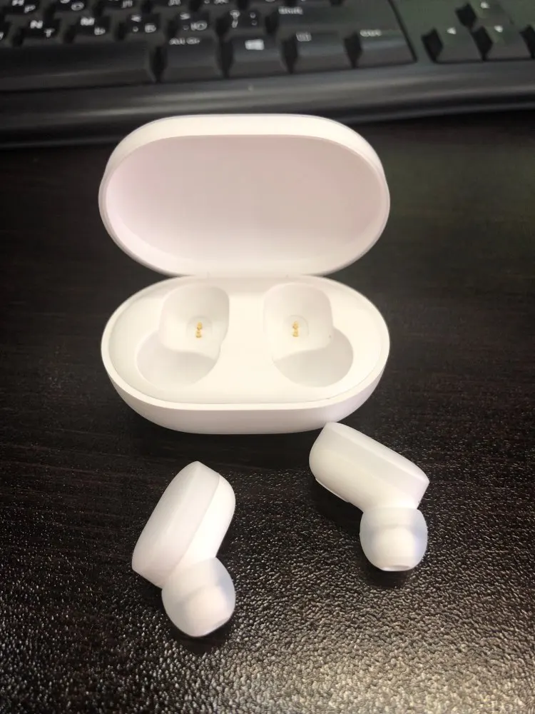 Наушники отличные. Заказ дошел быстро, меньше двух недель. В комплекте сами наушники с кейсом, зарядка, сменные резиночки разных размеров, а также инструкция. Звук чистый, басы все слышны, работают просто отлично, так ещё и дизайн шикарный. Брала ребенку и мужу. Ребенку резиночки были великоваты и наушники выподали, поменяли резинки, все идеально, не выпадают, мужу подошёл стандартный размер. Заказом очень довольна. Рекомендую магазин и товар.